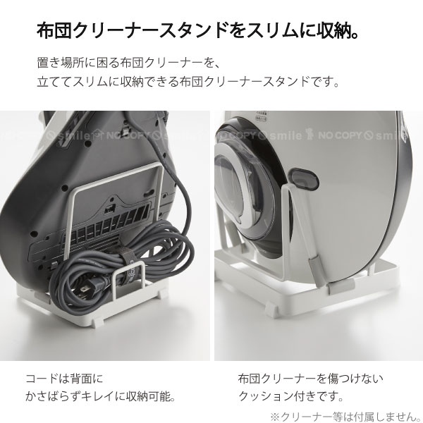 置き場所に困る布団クリーナーを、立ててスリムに収納できる布団クリーナースタンドです。