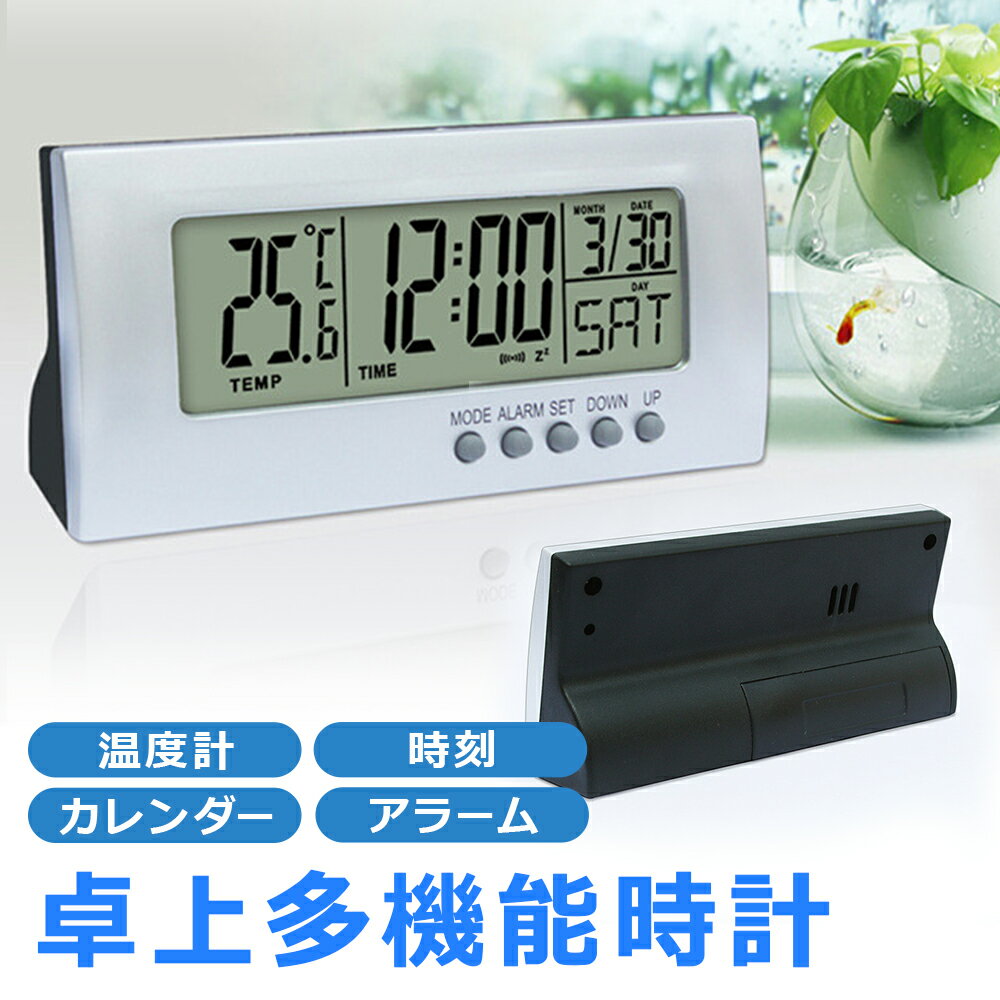 ■商品説明■ ●コンパクトサイズ、便利な卓上時計! ●アラーム機能もついているので、ベットサイドなどにもピッタリ! ●機能は温度計、時刻、カレンダー、アラームを搭載! ●スタイリッシュなデザイン! ■商品仕様■ ●サイズ:約10.2×5×2.5センチ ●パッケージサイズ:約12×6.2×3.6センチ ●重量:約51グラム ●素材:ABS ●電源:単4電池×2本(別売り) ※本商品の保証期間は商品到着後1週間以内になります。