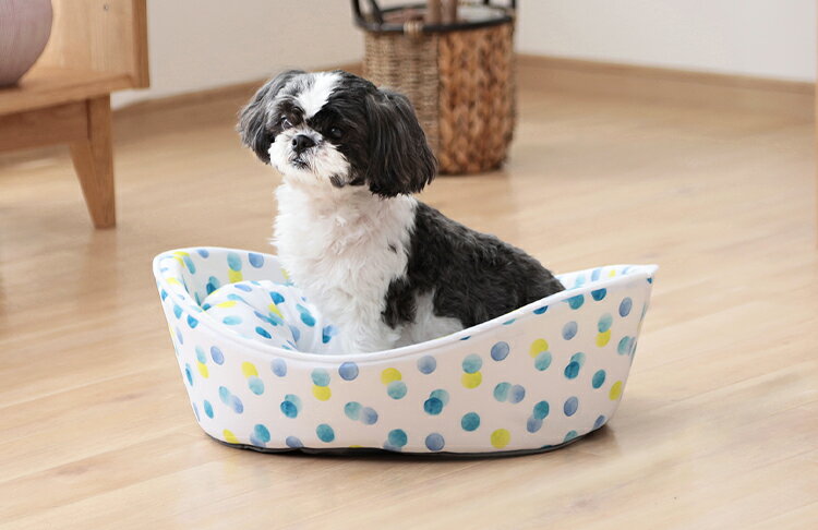 ■小型犬、猫 適応■商品サイズ(cm)幅約51×奥行約41×高さ約18■重量約310g■材質【本体】表面:ポリエステル100%底面:ポリプロピレン100%芯材:ウレタンフォーム【クッション】洗濯表示だと下記表面:ポリエステル100%裏面:ナイロン50%、レーヨン50%詰めもの:ポリエステルわた■洗濯表示【本体】洗濯できません。